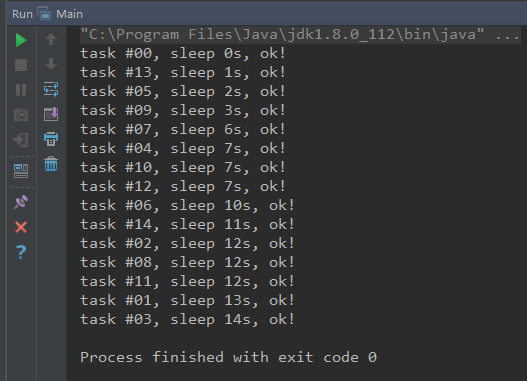 System.out.printf("task #%02d, sleep %ds, ok!\n", no, sleep);